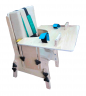 Опора для сидения с изменяемым углом наклона подножки и прямой спинкой до плеча необходима для пациентов с рекурвацией колена, что расслабляет мышцы и снижает спастику. Для устранения перекреста ног и для пассивной растяжки абдукционных мышц служит регулируемый и съемный абдуктор, предусмотрена фиксация стоп. Тазобедренная часть тела фиксируется набедренным креплением, а грудная — регулируемым креплением «жилетик». К сидению прилагается столик, прикрепляемый на липучках к подлокотникам. Ножки сидения и подлокотники регулируются по высоте. Опора установлена на колесах, задняя пара колес имеет тормоза.  Мягкие элементы на поролоне, обтянуты искусственной кожей.